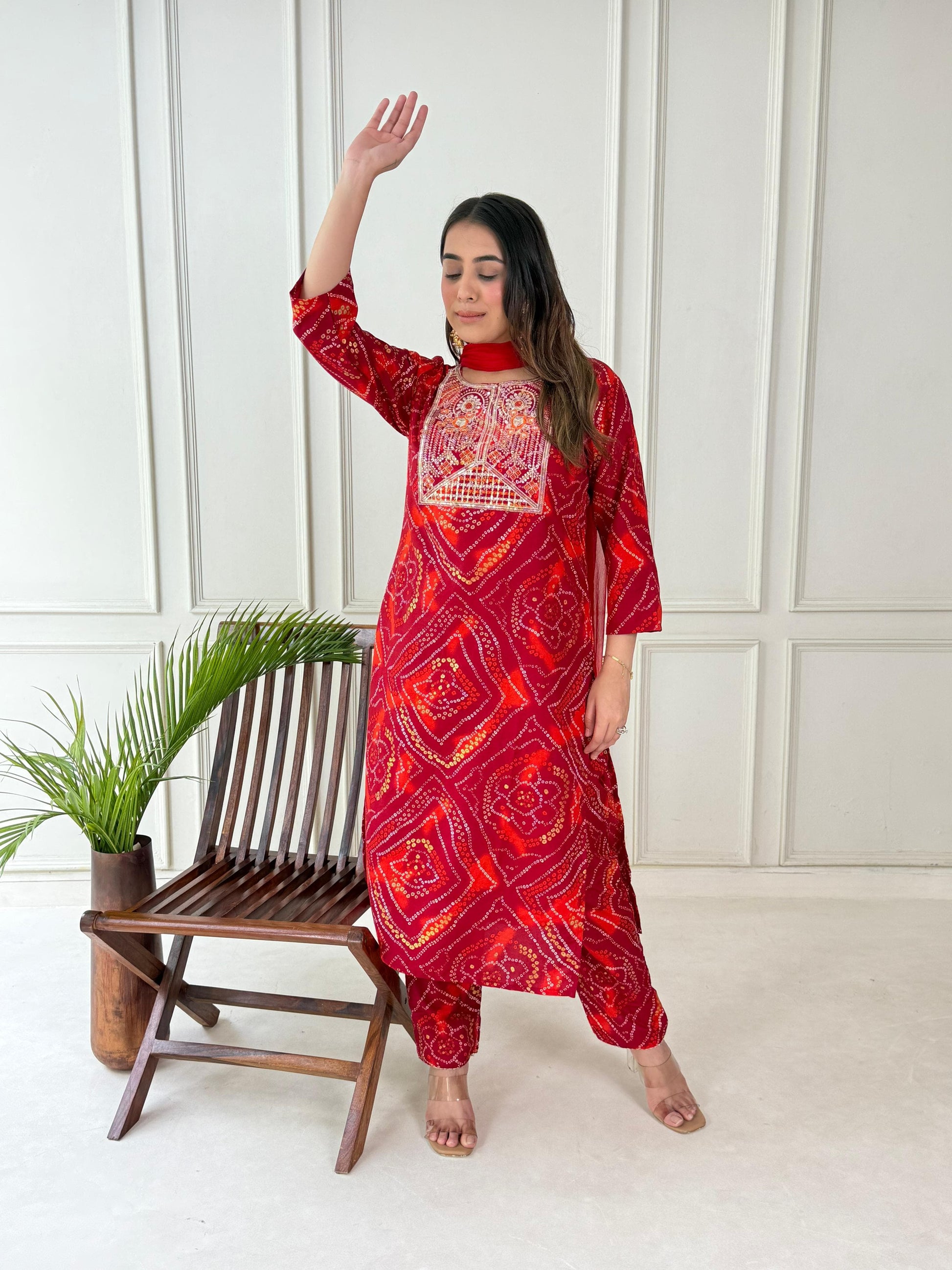 Brighten up your day with this elegant red printed kurti paired with straight pants. Designed for comfort and daily wear, this outfit features simple yet eye-catching patterns that work perfectly for office, college, or casual outings.